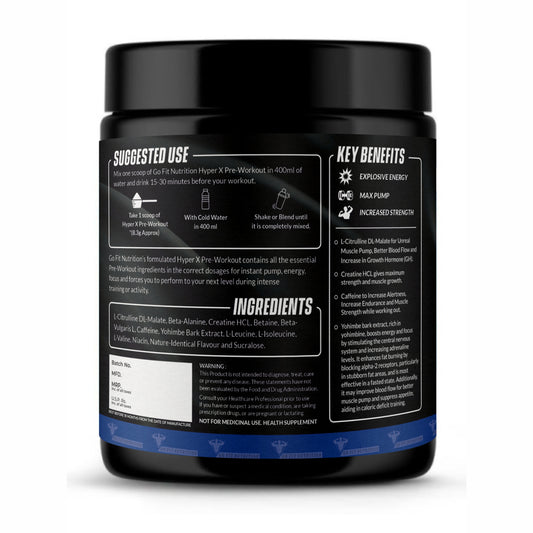 Hyper X Pre Workout (Berry Fusion, 30 Servings, 250G)| 250Mg Caffeine, 500Mg Yohimbe Bark Extract, 3000Mg Beta Alanine, 1000Mg Citrulline Powder